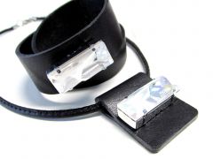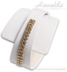 Kristályokkal variált csodás nyaklánc és karkötő szettben, a nagy képen arany színű olasz bőrön fehér, arany és rose gold Swarovski® csillogással. Bőr lánc hossza: 41 cm + 4 cm lánchosszabbító, a karkötő pedig patentokkal állítható két méretben: 16,5 és 18 cm-en.